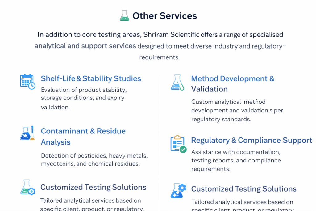 The Food & Farm division of the Analytical Science Division (ASD) provides comprehensive testing and analytical services to ensure the safety, quality, and compliance of food and agricultural products. Our laboratory supports manufacturers, processors, exporters, and regulatory bodies with accurate, reliable, and scientifically validated results.